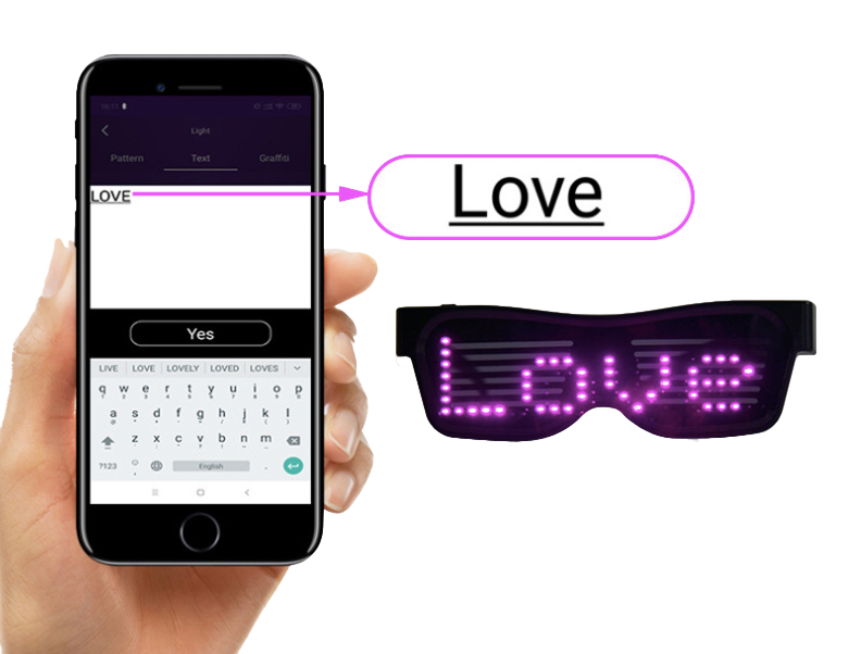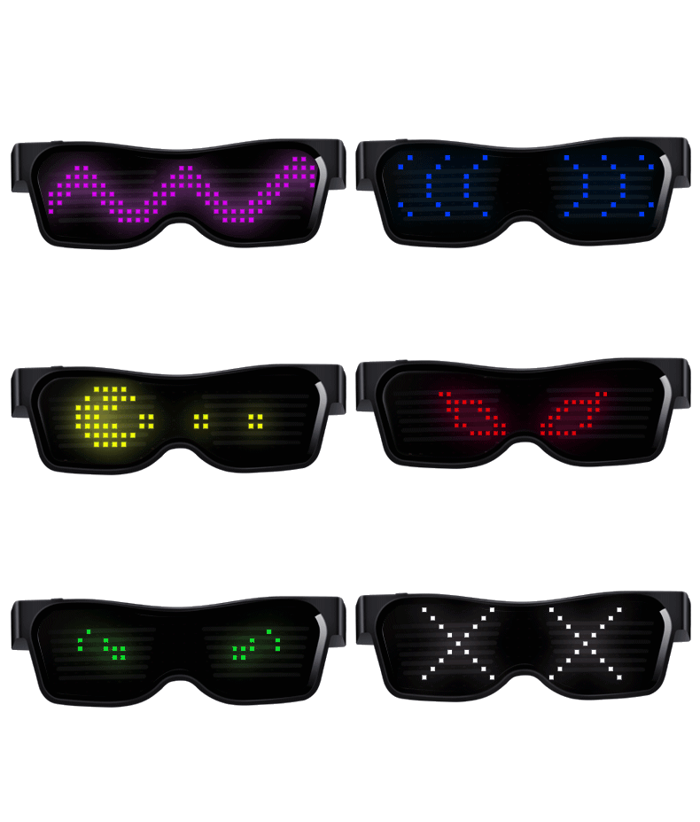 Funky Glasses App. You can program your own patterns via the Funky Glasses App and simply charge the Party Shades with the included usb cable.